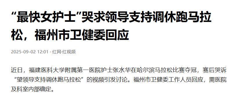 有媒体针对“护士能否调休外出跑马拉松”的问题跑去问了福州市卫健委。
